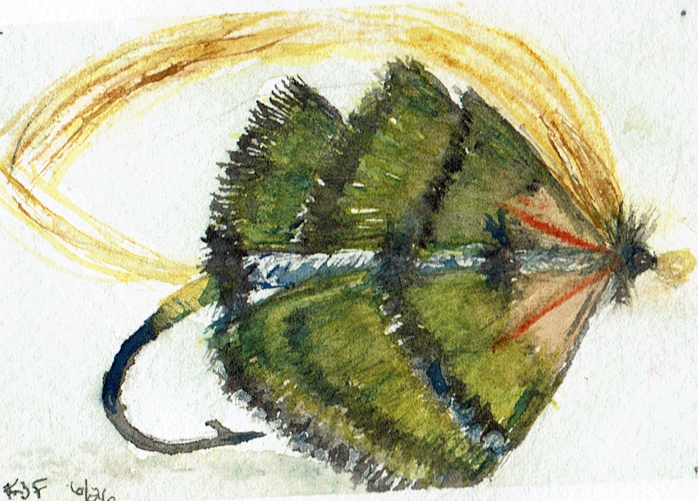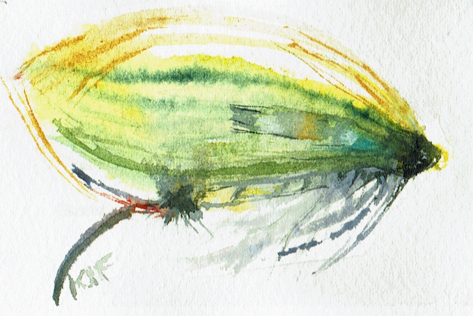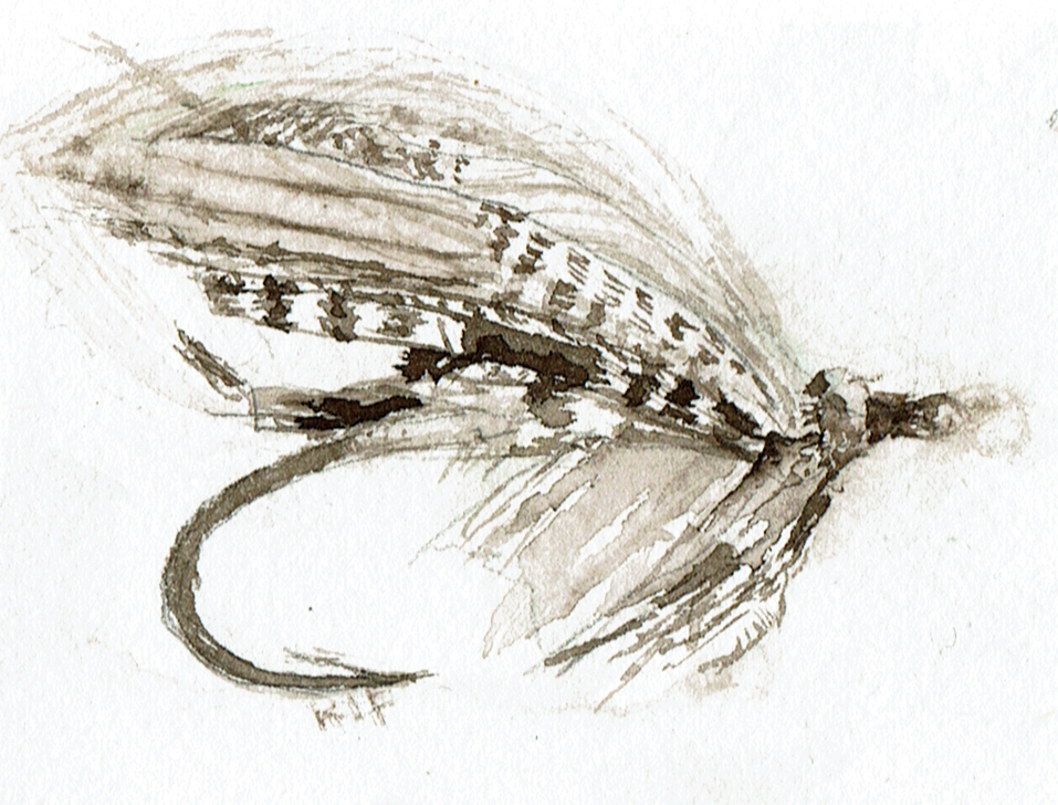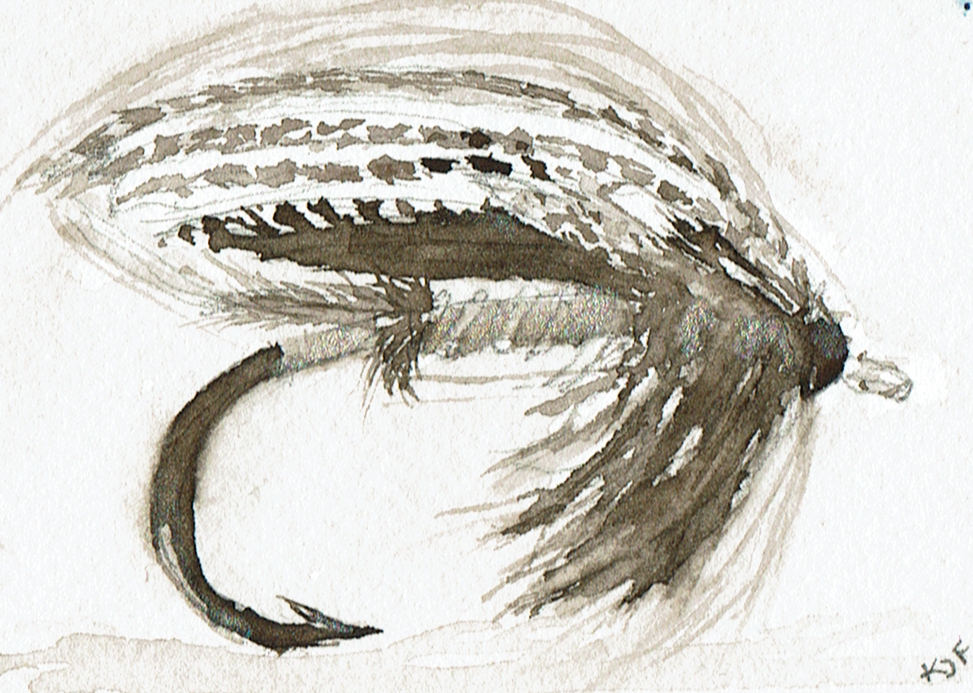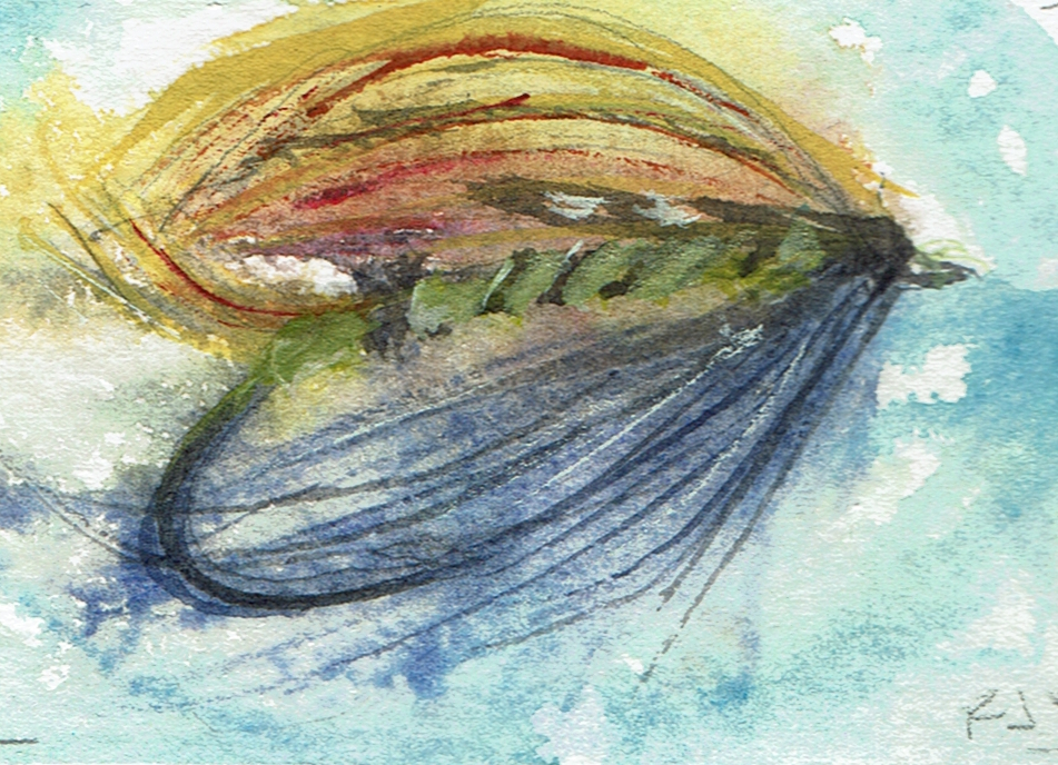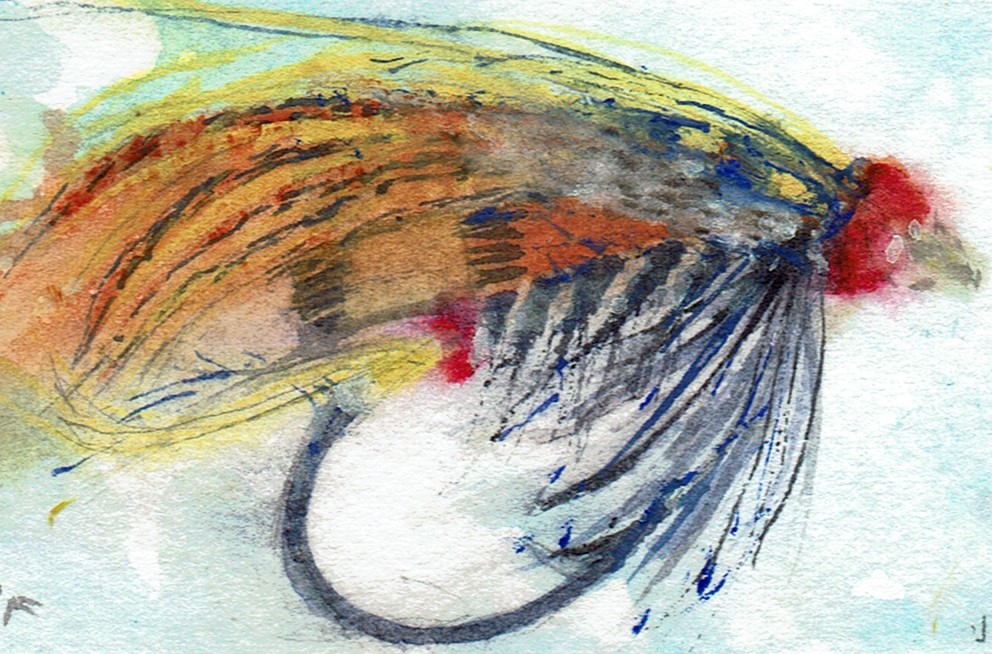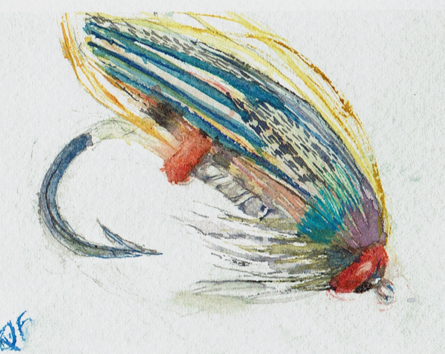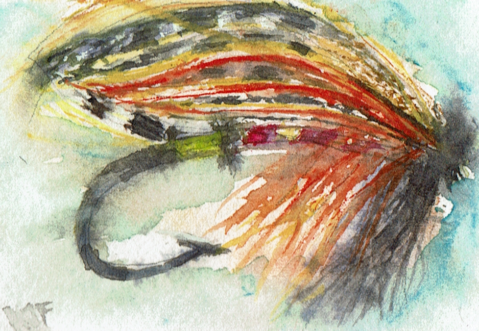 This page documents a January challenge from 1 to 21 day of 2026 (last to first). It is a watercolor exploration of looseness, observation, and play with full dress salmon flies. These works are part of an ongoing practice and are not for sale. The flies themselves were tied by Eric Austin, whose work appears in classic fly archives and who currently serves on the board of Fly Fishers International.