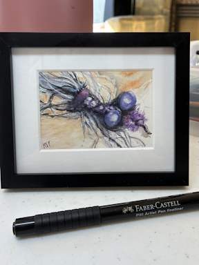 The painting is 3 x 2.5 inches in a matted 4 x 5 inch black frame.